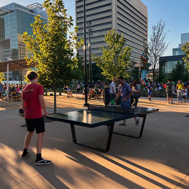 Grab your paddle and step up to the Monoline Ping Pong Table. Designed to activate outdoor spaces and built to withstand the elements. Have fun mixing and matching colors for the net, tabletop, and legs to add an extra playful element to your space.